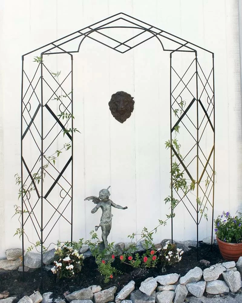 The Achla Designs Athena Trellis will delicately frame a special planting or sculptural accent in a garden vignette, with bi-fold side pieces that support an airy art-deco style pediment. The trellis is easily dismantled and folds flat for storage.