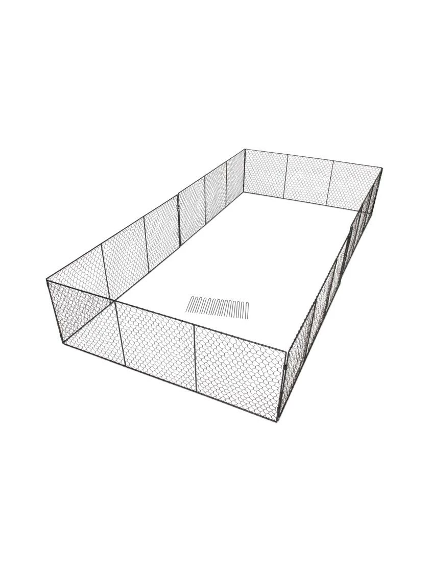 Simple but durable 16” tall chicken wire fence secures your crops from small critters and pets, while still allowing easy access for you to reach in or step over. Easy to assemble and install. Kit includes 2 sections of 3 pre-connected panels (6 panels total), cotter pins to secure the panel sections together, and 6” ground staples to anchor the fence in the ground. Available in galvanized or powder-coated black finish. 90” L x 45” W, assembled.