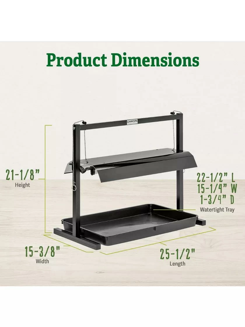 Enjoy the fun — and savings — of starting your own plants from seed. Our SunLite® Gardens give your plants the quality and intensity of light they need. You can also grow herbs, houseplants, or even try your hand at growing orchids. Our Tabletop Grow Light has a sturdy, compact aluminum frame. The low-profile light fixture holds two, 2′ long T5 fluorescent bulbs that produce the full-spectrum light plants need. An attractive black finish and compact footprint make this grow light suitable for year-round use on a countertop or side table. This complete light garden includes frame, one adjustable-height fixture, two T5 fluorescent bulbs and a watertight plant tray.
