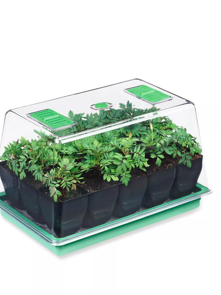 - Includes a base, 7-1/2″ H growing dome with adjustable vents, and a 15-cell reusable growing tray