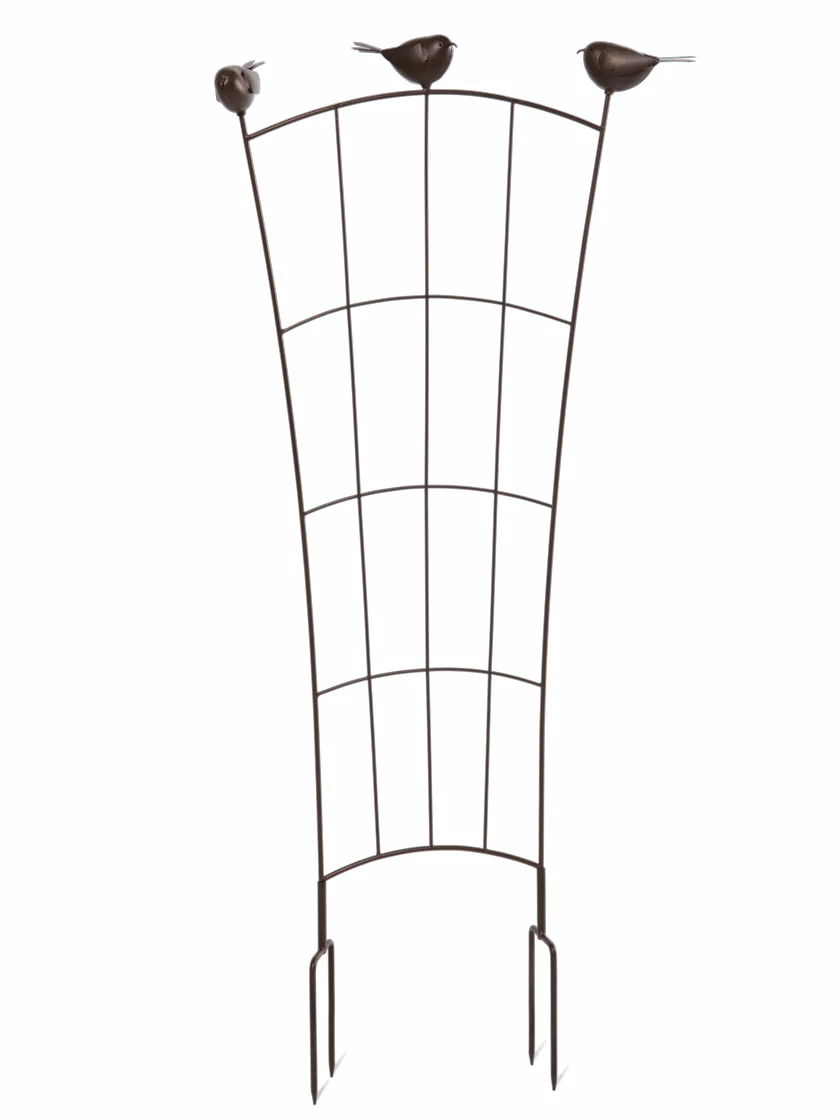 Support a variety of flowering vines with this fun trellis! Plant Josephine clematis, nasturtium, abutilon, sweet peas, or tidal wave petunias and three little birds will watch over them diligently.