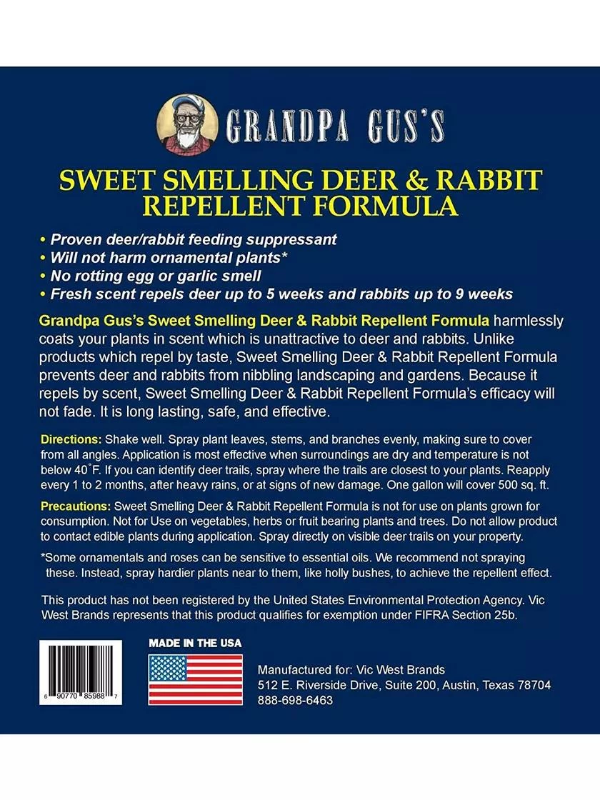 Rabbits and deer are so majestic and charming from far away — and that’s just where they’ll stay with Grandpa Gus’s Deer & Rabbit Repellent Spray! Far away from your favorite flowers, your adored ornamental shrubs, and your cherished container plants.