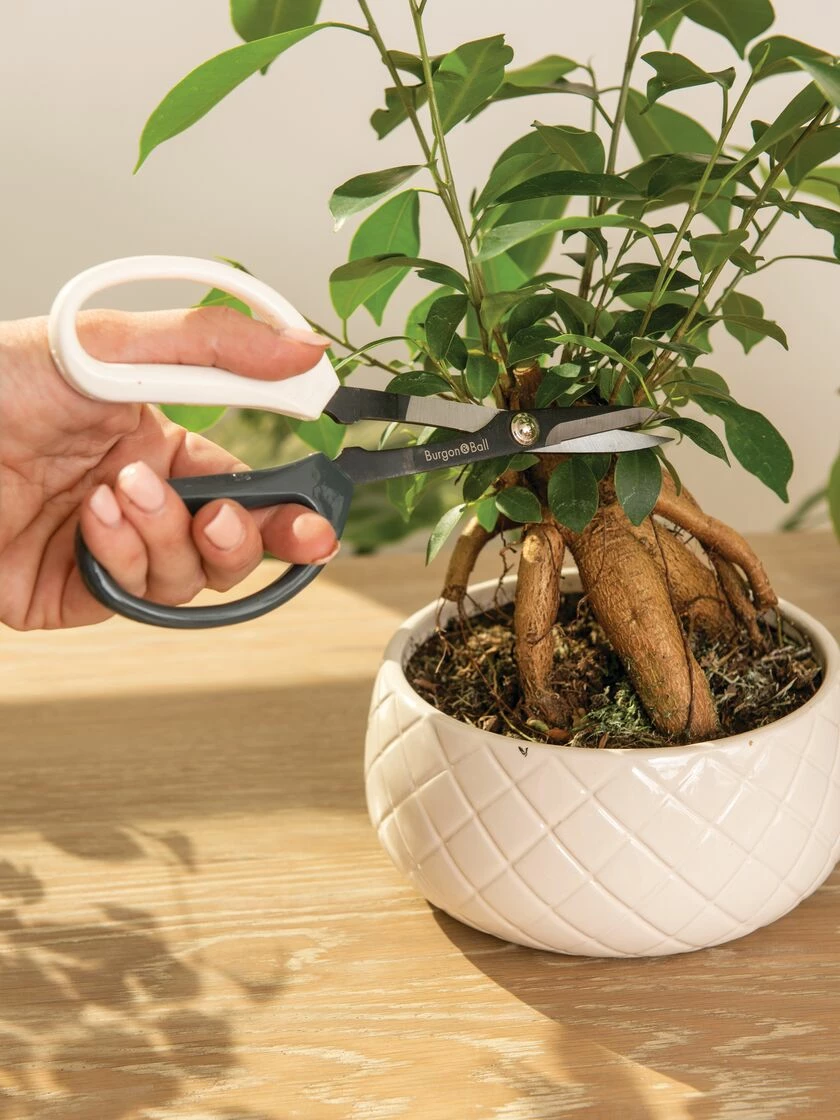 Deft enough for bonsai care, but versatile enough to use as all-around utility pruners, these Japanese Pruning Scissors are so effective and so attractive, you’ll be looking for any excuse to keep them in your hands. Engineered for strength and precision, the high carbon steel blades easily retain a razor-sharp edge and the size of the handles provides perfect leverage for cutting sizable branches or making meticulous snips. Beyond bonsai, these pruners are nimble enough to shape or trim nearly any size houseplant, with fine, pointed blades that can reach and isolate stems for cleaner cuts.