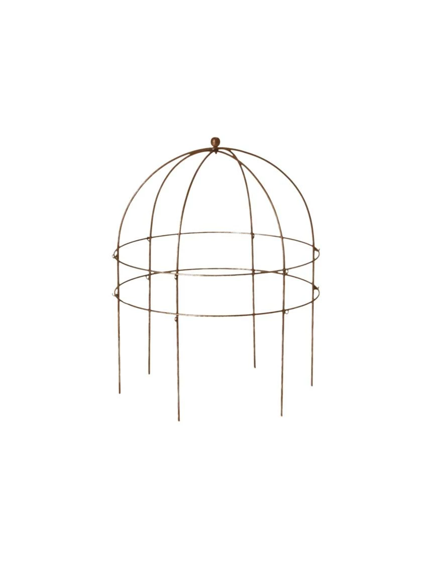 This extra-sturdy grow-through support keeps plants contained and upright. Perfect for peonies, baptisia and similar vigorous plants. Or place the support around a special plant you’d like to highlight. This unusual and eye-catching support is a piece of landscape art even when plants aren’t grown in. Adorn it with fairy lights and greens for a striking addition to your holiday decorations. The powder-coated steel has been painted by hand to resemble aged, rusted metal. New easy assembly.