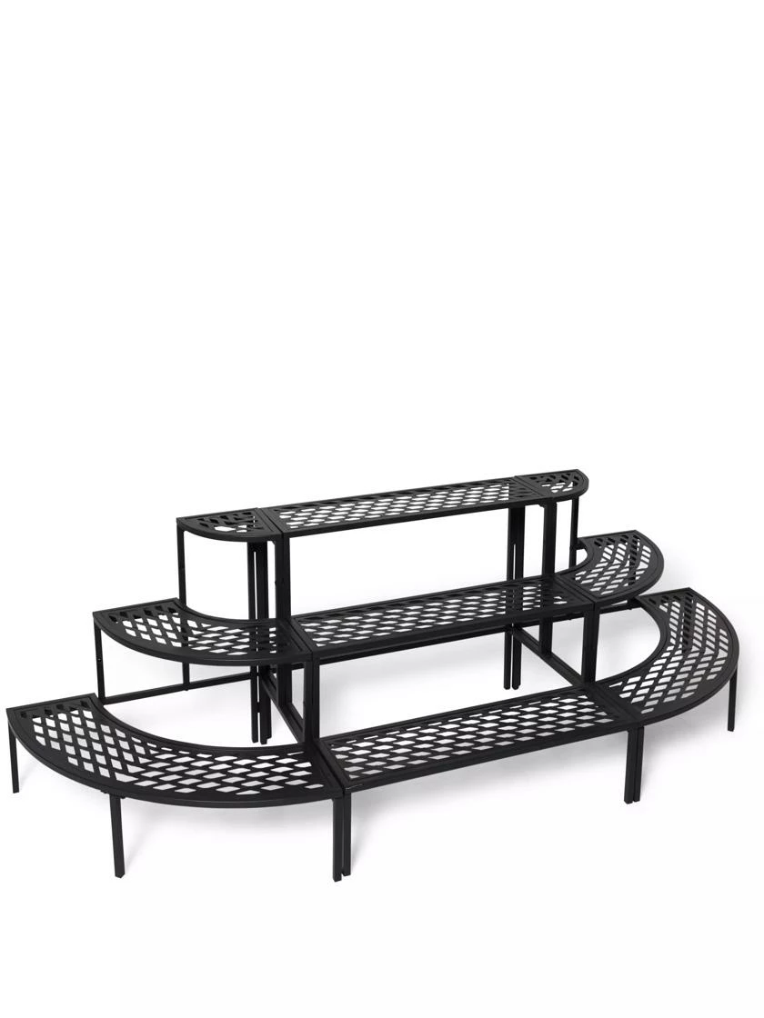Show your plants some love! This set includes one Rectangular and two Quarter-Round Lattice Plant Stands. In summer, display plants outdoors on porch or patio. When the weather cools, bring both plants and stands indoors. The tiered design elevates plants and, because it holds multiple pots, frees up windowsills, countertops, and table space.