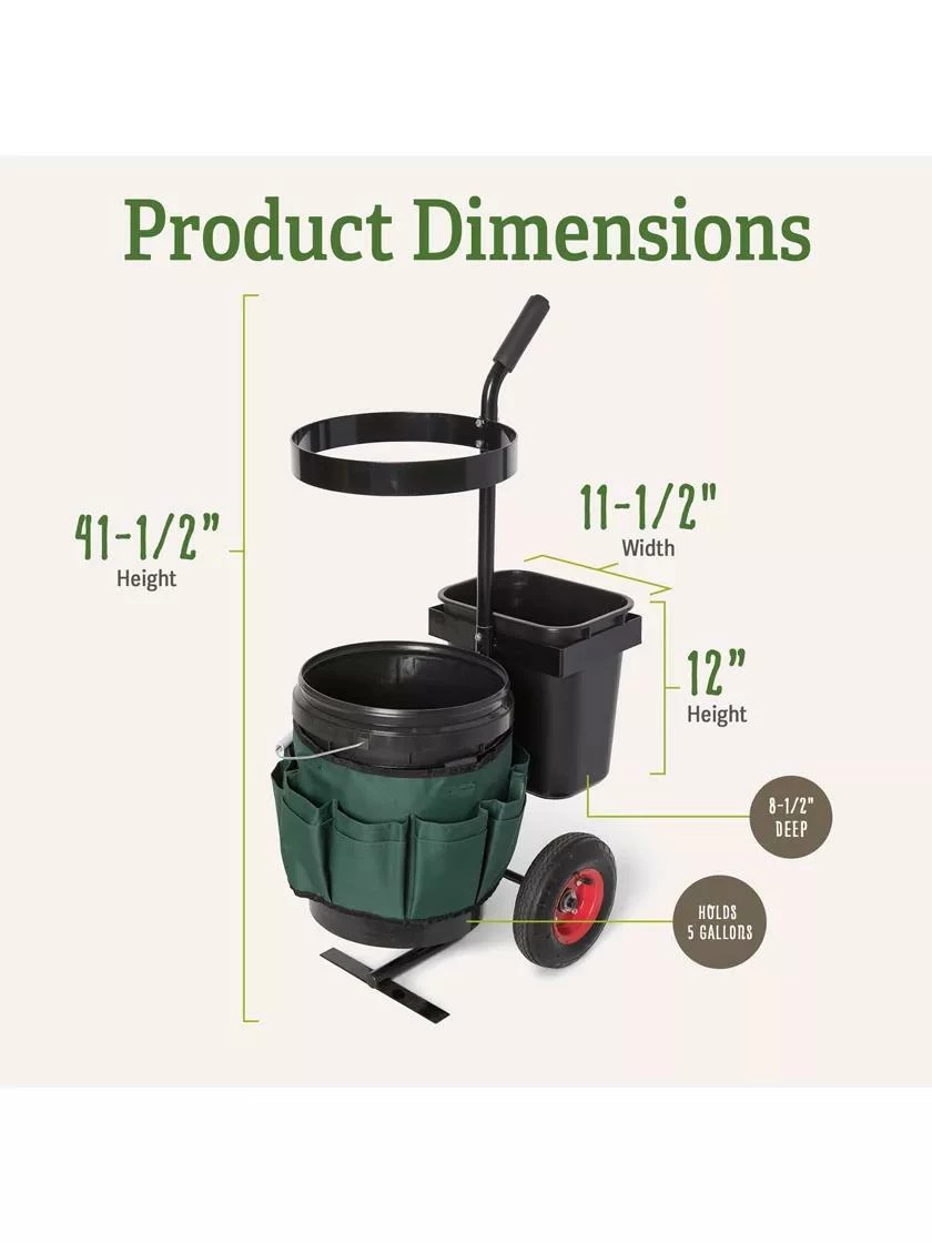 Tired of struggling and juggling your shovel, rake, hand tools and supplies out to the garden? Or making multiple trips back and forth? This easy-roll caddy keeps tools organized in the shed. Then, when it’s time to head out to the garden, just roll the caddy where you need it and you’re ready to go. Includes 5-gallon bucket with fabric pocket organizer for small tools, a small bucket for carrying other supplies, vegetables, mulch and more. The top ring corrals long-handled tools.
