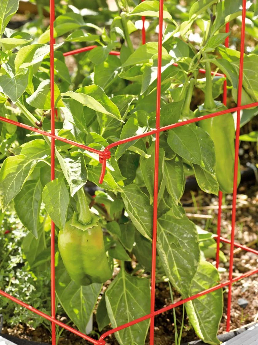 - Vegetable supports hold plants upright for a big harvest of unblemished fruit