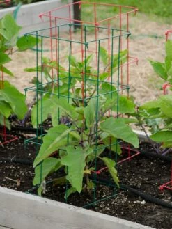 Bushy vegetable plants like peppers and eggplants produce a larger, cleaner harvest when their fruit doesn’t touch the ground. Our Pepper and Eggplant Cages support plants on all sides without tying and keep plants upright for better air circulation and fewer diseases. To install, simply push legs into the ground. Cages fold flat for easy off-season storage.