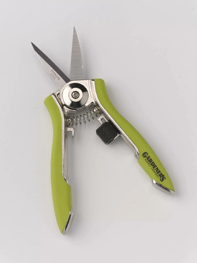 Our staff gardeners love these compact snips. The ergonomic, non-slip grip and narrow, super-sharp blades let you make precision cuts without damaging nearby stems. Perfect for harvesting herbs, flowers, fruits and vegetables, as well as light pruning and deadheading. A sliding lock lets you stow them safely.