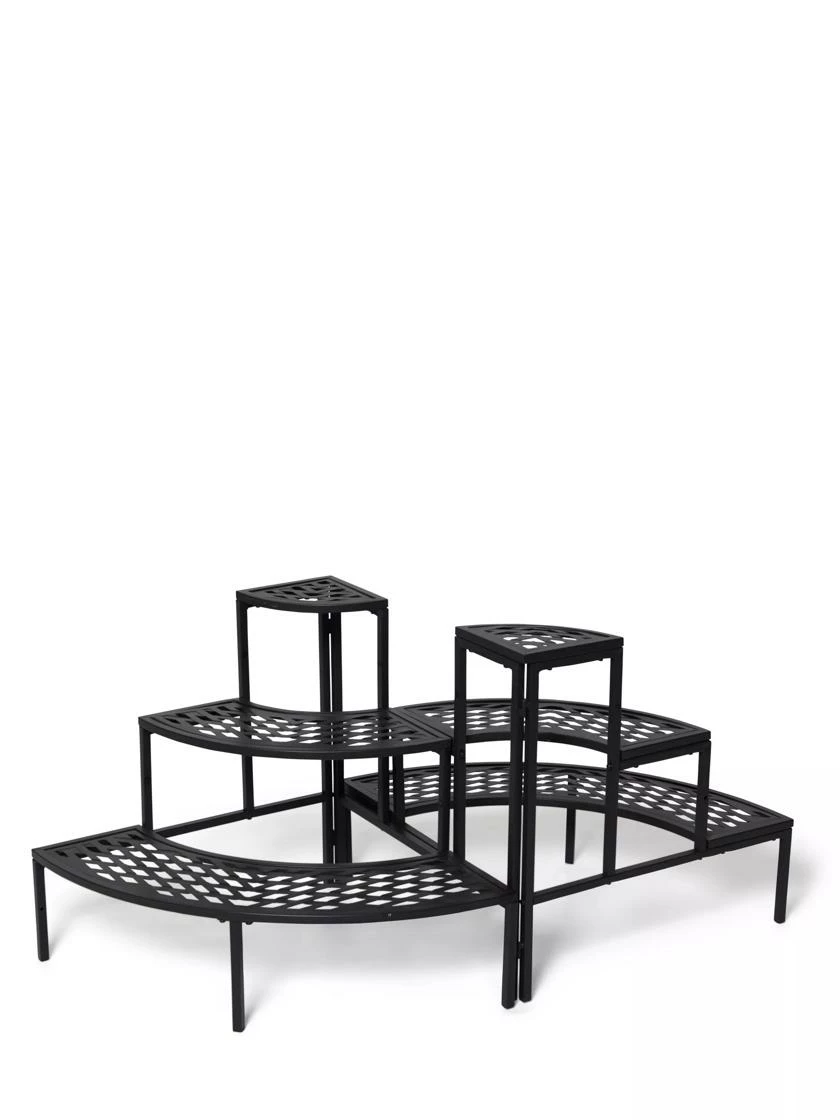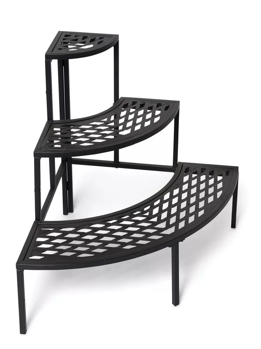 Sensible, sturdy, beautiful — and versatile! In summer, display plants outdoors on porch or patio. When the weather cools, bring both plants and stand indoors. Clever tiered design raises plants and frees up windowsills, countertops, and table space. Tuck it into a corner, or use multiples to create a half-round or full-circle display. This matte black stand matches our Rectangular Lattice Plant Stand so you can showcase a larger array of plants.