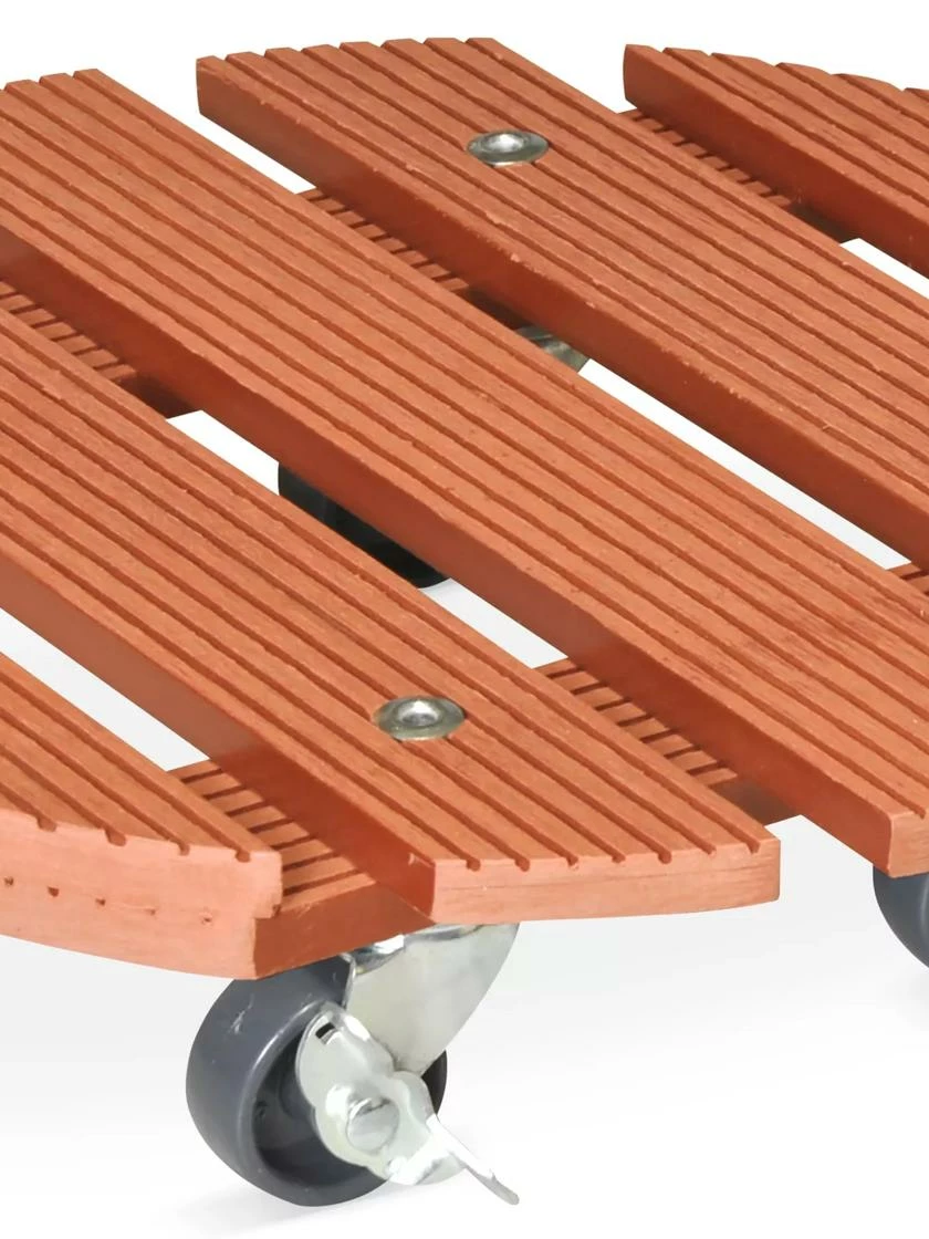Indispensable, practically indestructible and extremely strong! The secret to these rolling plant caddies is their German engineering and a special composite of wood and polypropylene that’s tough as nails, waterproof, frostproof, and UV-resistant. Non-slip surface helps keep pots safely onboard. Heavy-duty casters, two with brakes. Suitable for both indoor and outdoor use.