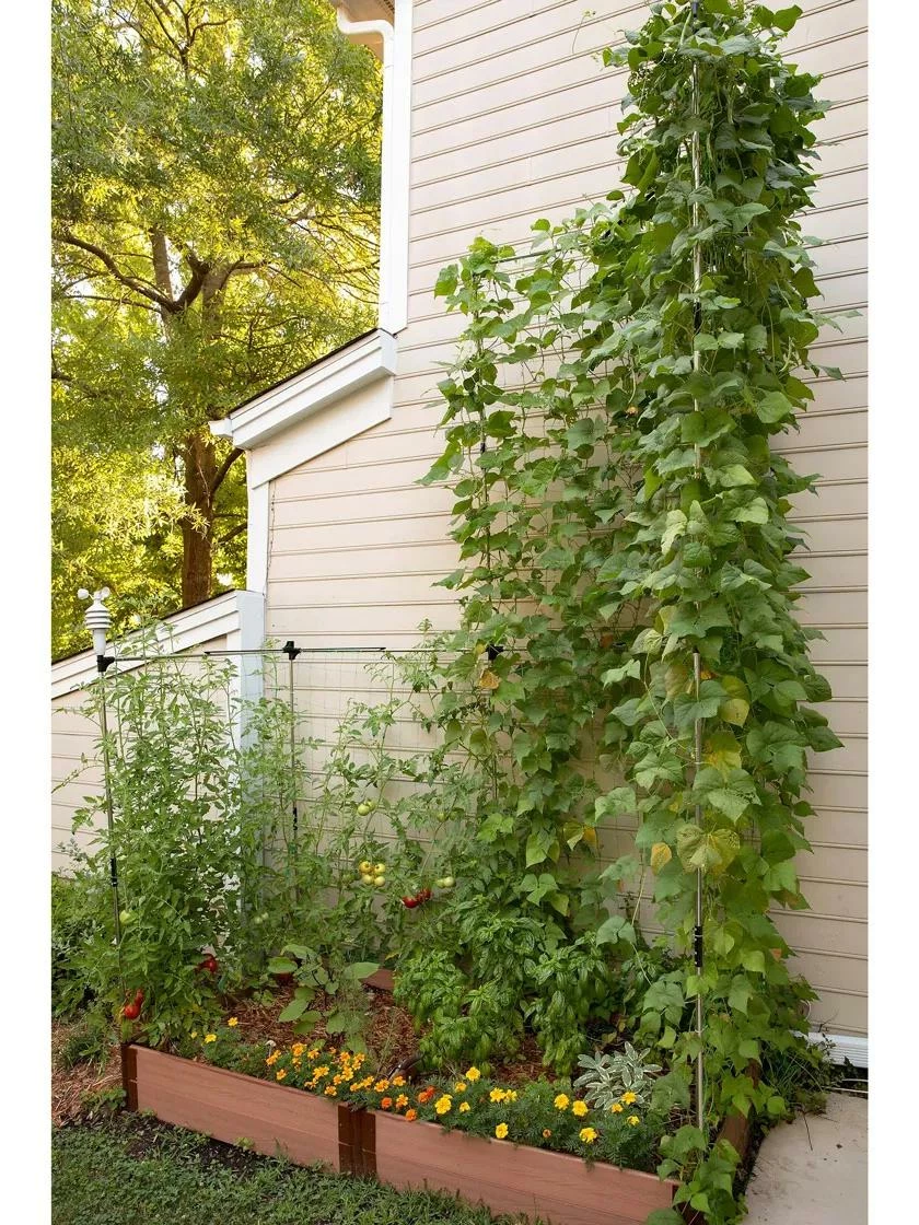 Vertical gardening allows you to grow more in a small space and creates healthier growing conditions for vining plants. This two-piece system adds an additional 48 sq. ft. of vertical planting space to your raised garden bed. Hinged panels can be fully extended to a width of 8′, or angled to form a corner. With multiple kits, you can extend the width in 8′ increments.